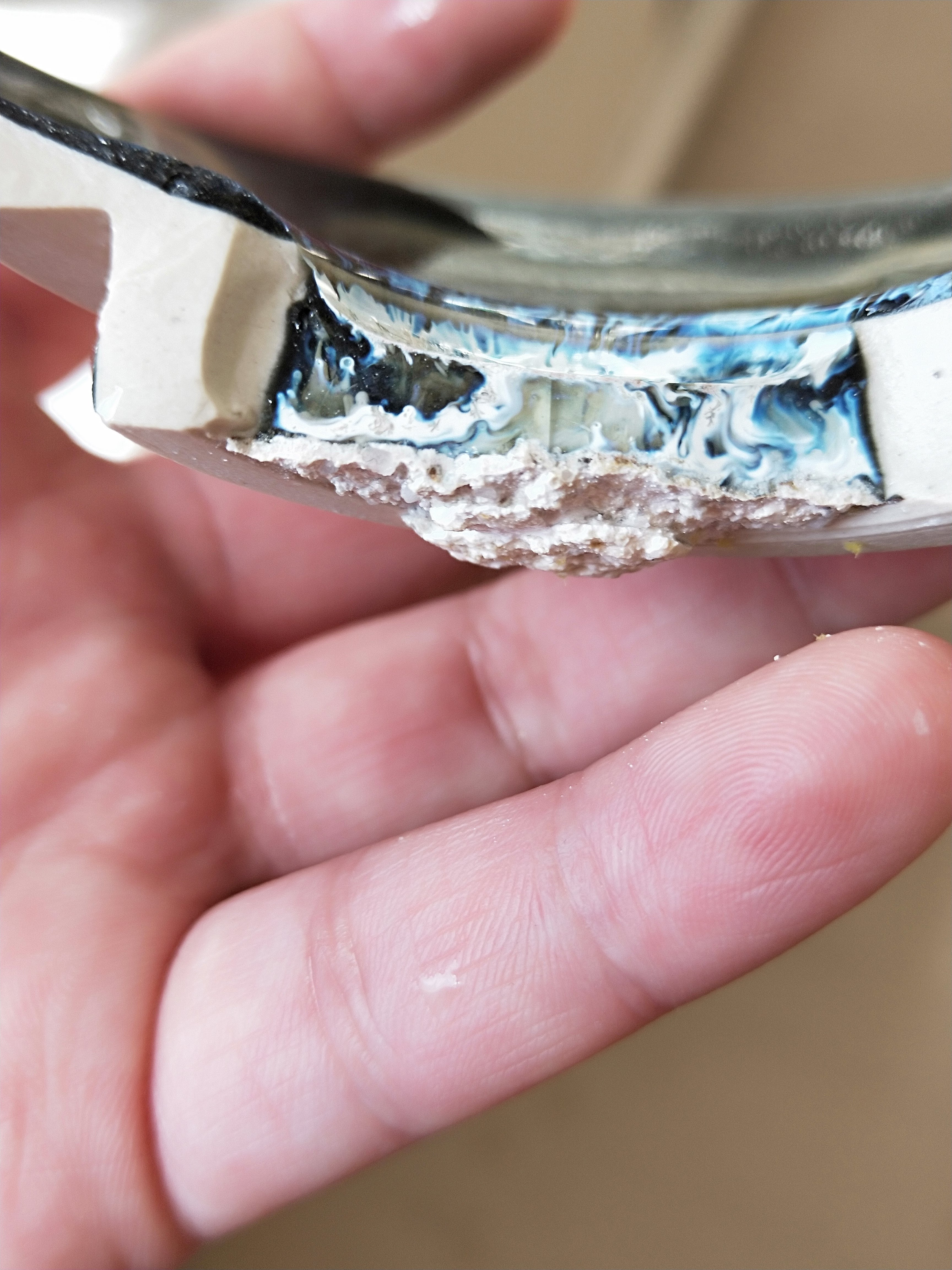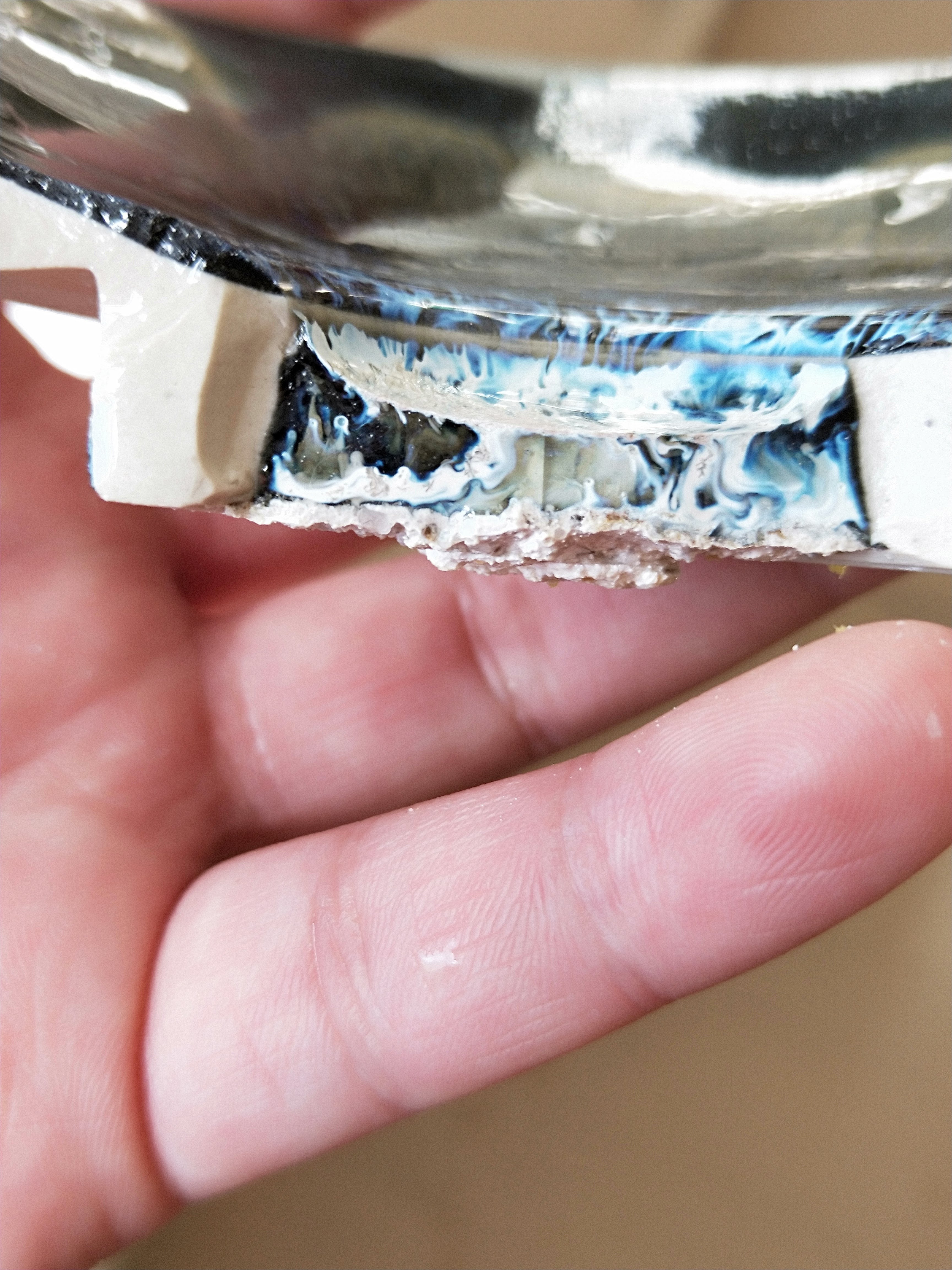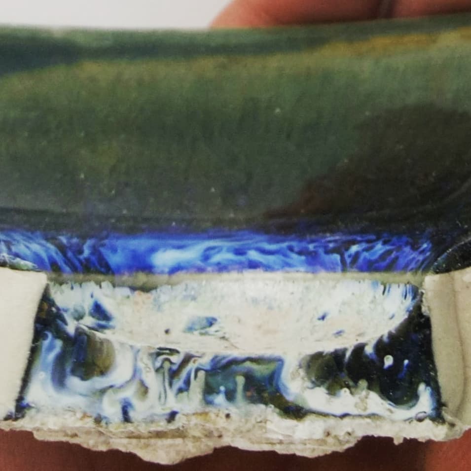 Have you ever thought about the inside of a glaze? The multiple layers that are inside a makeup of the glaze. How many layers flow in and out around the different glazes or itself inside a kiln? Artwork description : Experimentation with glaze pool, splitting a bowl in half to reveal the layers.